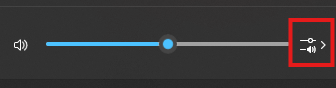 音量バーの右側にある「>(設定を選択)」のようなマークをクリックしてください。