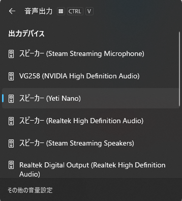 1. 出力デバイス(音が出る先)が正しいかチェック