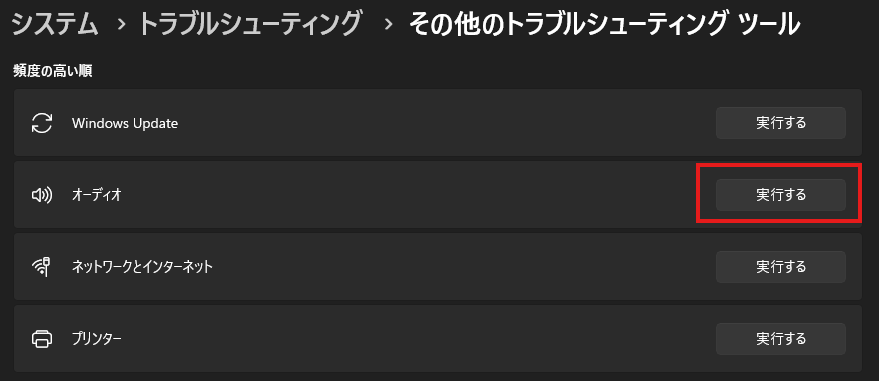 5. OS標準の「オーディオ トラブルシューティング」を実行